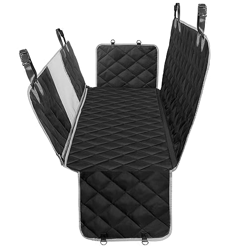 The waterproofing is genuine — a multi-layer construction with a waterproof barrier bonded to the underside of the quilted fabric prevents liquid from reaching the seat cushion. The non-slip backing uses a grip material that holds on both fabric and leather seats without leaving marks. The hammock configuration connects to both front and rear headrests via adjustable straps and sits taut enough to prevent a medium-sized dog from nosing through to the floor.