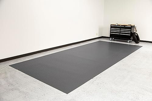 The diamond tread pattern provides excellent traction whether the floor is wet or dry, while also hiding minor surface imperfections in the concrete beneath. At 7 ft 6 in x 14 ft, it covers a standard one-car bay and can be trimmed to fit irregular shapes using a utility knife.