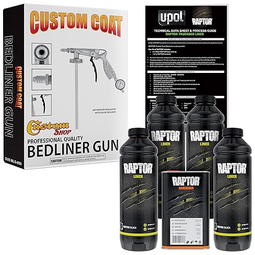 This Custom Shop bundle pairs the proven U-POL Raptor formula with a Custom Coat spray gun that includes a built-in pressure regulator — a significant upgrade over the basic gun that comes with the standard Raptor kit.