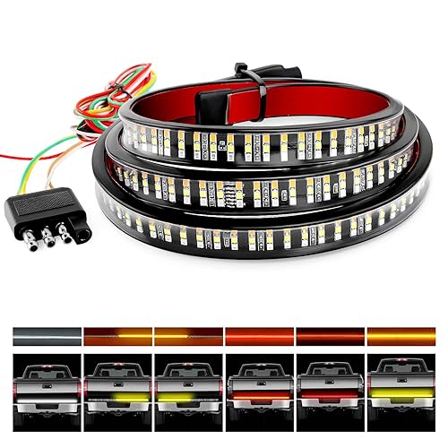 MICTUNING 60 Inches Triple 504 LEDs Tailgate Strip Light Waterproof with 4-Way Flat Connector - 5 Functions Solid Amber Turn Signal, Red Brake Running, White Reverse Lights - eBay Link